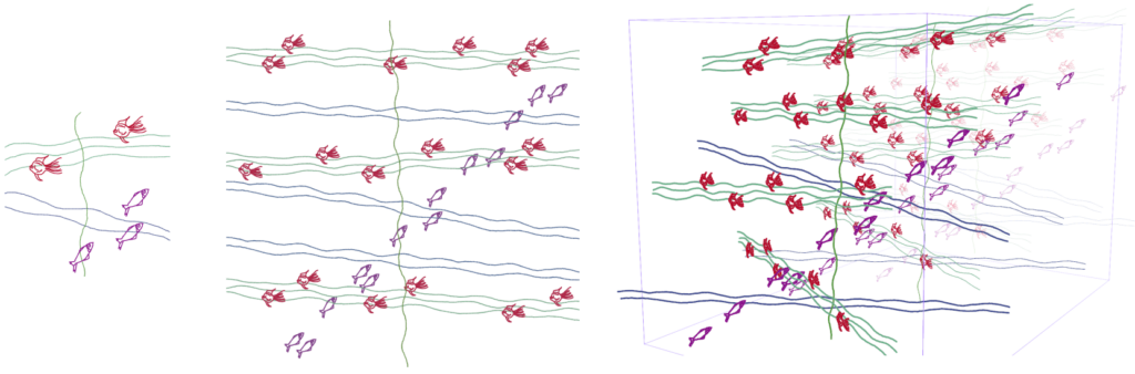 New progressive sketching system designed to ease the creation of animated illustrations. We combine 3D modeling and pattern-based shape distribution to create background volume and temporal animation control, enabling narrative design experiments for educational applications in biology